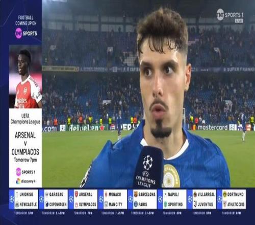 在欧冠联赛阶段第2轮主场1-0击败本菲卡之后,切尔西前锋佩德罗-内托接受了来自TNT体育的采访。