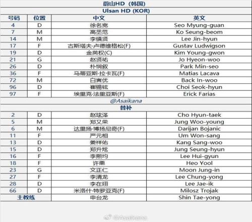北京时间10月1日20:15,亚冠精英联赛第二轮,上海申花坐镇主场迎战蔚山HD,本场比赛主裁判是日本裁判荒木友辅,VAR是日本裁判饭田淳平,赛前双方公布首发: |