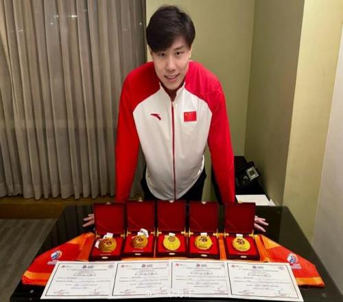 覃海洋社媒晒出5枚游泳亚锦赛金牌,祝愿家国共好