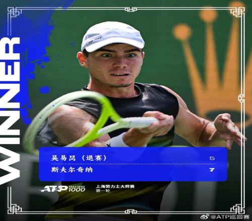 • 吴易昺首盘5-7斯夫尔奇纳后退赛,止步上海大师赛首轮