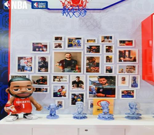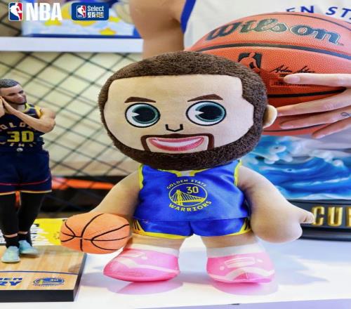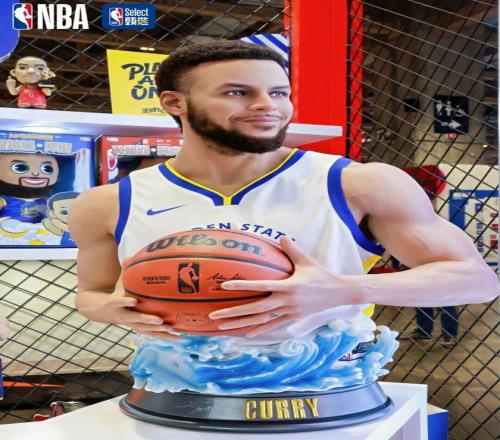 展厅的展品也很有意思,库里的雕像再次出现,包括库里的公仔,他的AI互动功能贼给力。