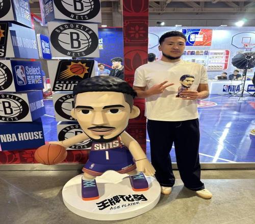 既然中国赛是太阳vs篮网,那么太阳的吉祥物来到NBA HOUSE,也就不足为奇了,手捧王牌化身布克手办,可惜捧不了KD了......