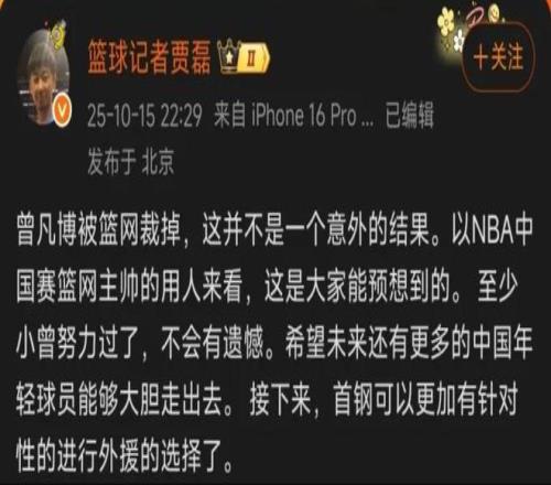 曾凡博去处基本确定,北京记者发文暗示,北京男篮众神即将归位!