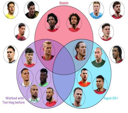 随着利桑德罗-马丁内斯同样从滕哈格的老东家阿贾克斯加盟,再加上曾在心脏骤停康复期间随阿贾克斯训练的埃里克森,以及从费耶诺德引进的马拉西亚,队内并不缺少荷兰球员,或是与滕哈格有过渊源的球员。不需要多聪明就能预见接下来会发生什么。一旦滕哈格离任,接替他的人将不得不面对一群他急于清理掉的荷兰球员。曼联拥有数量令人疲惫的足球高管,但长期以来却缺乏一种能够超越教练更迭、保持连贯和一致的引援策略。 尽管开局不利,并且还遭遇了0-7惨败给利物浦的羞辱,滕哈格仍然在首个赛季完成反弹,赢得了联赛杯,并以第三名的成绩获得欧冠资格。结合之后发生的一切,那一切如今看起来甚至显得有些奢侈。曼联还闯入了足总杯决赛,但在温布利输给曼城的结果,印证了滕哈格对德赫亚的担忧。这名门将曾在赛季后半段犯下一些代价高昂的错误。在滕哈格的建议下,俱乐部撤回了与德赫亚的续约报价,这位效力12年的门将被清洗离队,取而代之的是滕哈格旧将安德烈-奥纳纳。更多的阿贾克斯元素,也意味着更多需要由下一任主帅清理的包袱。曼联还签下了阿姆拉巴特,以及以7200万英镑从亚特兰大引进的霍伊伦。滕哈格的经纪人基斯-福斯及其体育娱乐经纪公司均参与了这两笔交易。福斯在曼联的影响力引发了一些担忧,一些球员也感觉主帅对旧部存在偏袒,尤其是在右翼位置上对安东尼的信任,这在一定程度上挤压了桑乔、阿马德-迪亚洛和奥马里-福森的机会。