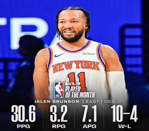 北京时间1月3日,NBA官方正式公布2025-26赛季12月的月最佳球员,俄克拉荷马雷霆的谢伊-吉尔杰斯-亚历山大与纽约尼克斯的杰伦-布伦森分别当选。 12月最佳球员:西部亚历山大 东部布伦森 NBA官方正式公布2025-26赛季12月的月最佳球员,俄克拉荷马雷霆的谢伊-吉尔杰斯-亚历山大与纽约尼克斯的杰伦-布伦森分别当选。