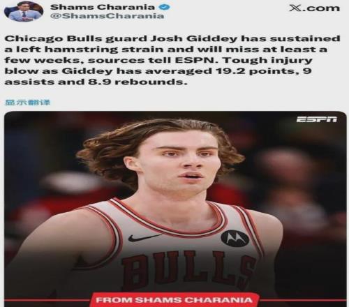 首先是公牛的后卫吉迪,他又一次因伤倒下。 据美国篮球名记Shams报道,吉迪的左腿筋出现拉伤的情况,预计又要缺席好几周的比赛。