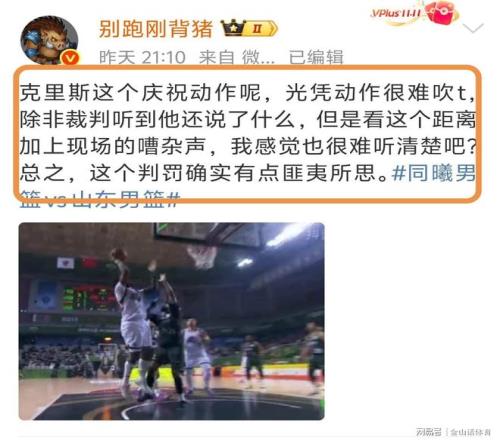 通过慢镜回放,我们可以清晰看到,克里斯篮下进攻,防守人确实有犯规嫌疑,克里斯进球后,疑似抱怨裁判没吹犯规,而那个双拳下压,更像是庆祝的动作,并不是什么太过激的行为,结果裁判一声哨响,吹了克里斯技术犯规。裁判的这个莫名其妙的响哨,不仅让克里斯愕然,也让主队球员一脸懵逼……