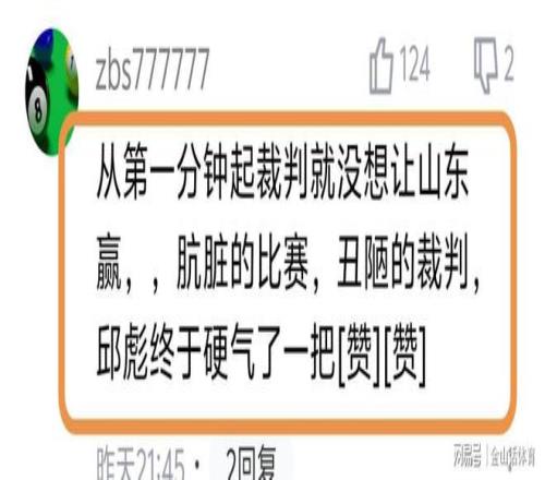 山东男篮疑在客场遭受不公正待遇,网友们赛后也是纷纷吐槽。“从第一分钟起裁判就没想让山东赢,肮脏的比赛,丑陋的裁判,邱彪终于硬气了一把。”;“有这样的裁判中国篮球能有好?”;“裁判就是笑话 有人管裁判吗”;“并不是某一场丑陋,是这个联赛丑陋”;“这比赛真够牛的,40分钟比赛能罚66个罚球”;“好看的比赛,裁判非得找事”。