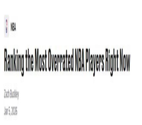 北京时间1月6日,知名美媒Bleacher Report评出了当今联盟最被高估的五名球员。核心评判标准是:大众对这些球员的期待与追捧,远超其实际赛场表现和对球队赢球的贡献值。以下是倒序揭晓和解析——