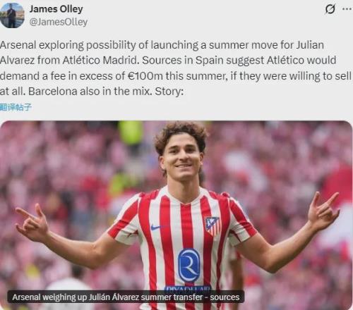 跟队:阿森纳探索夏天收购阿尔瓦雷斯!枪手两大将伤愈复出!
