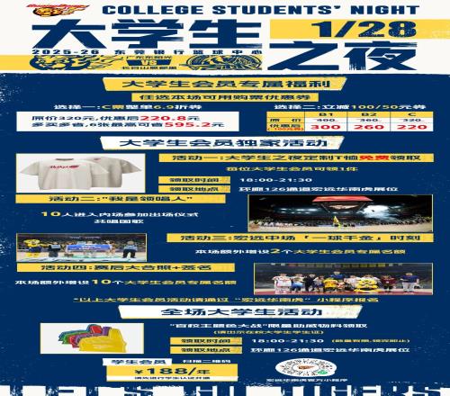 1月28日前瞻I广东主场战吉林,大学生之夜重磅来袭!