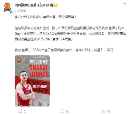 本赛季山西男篮表现较之上赛季存在下滑,他们急需引援升级阵容实力。如今山西官方宣布:经与球员本人协商并达成一致,山西男篮与球员凯尔-盖伊正式签约,待向CBA公司报送注册材料并审核、公示通过后,盖伊将代表山西男篮征战2025-2026赛季CBA联赛。 盖伊1997年出生于美国印第安纳州,身高1.85米,体重75公斤,司职得分/控球后卫。2018-2019赛季,盖伊代表弗吉尼亚大学出战38场比赛,场均得到15.4分、4.5篮板和2.1助攻,帮助球队夺得NCAA总冠军,并荣获NCAA最终四强赛最杰出球员奖(MOP)。