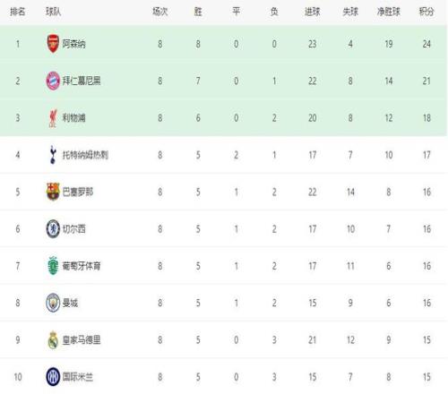 本赛季的欧冠联赛第一阶段前七轮战罢,全胜的阿森纳和6胜1负的拜仁慕尼黑,已经提前锁定了两个欧冠十六强的名额,哪些球队能够斩获前八中的另外六个席位,避免附加赛的鏖战,也就成为了最大的看点,这一个比赛日,欧冠第一阶段收官战全面打响,十八场比赛同时开战,在经历90分钟的鏖战之后,最终前八名尘埃落定。